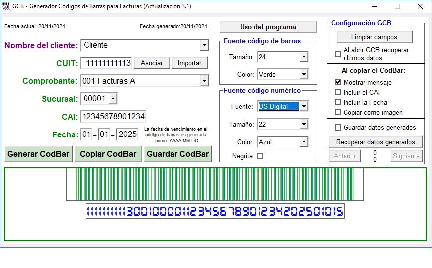 GCB3 utiliza una fuente del código de barras diseñada especialmente para el programa.